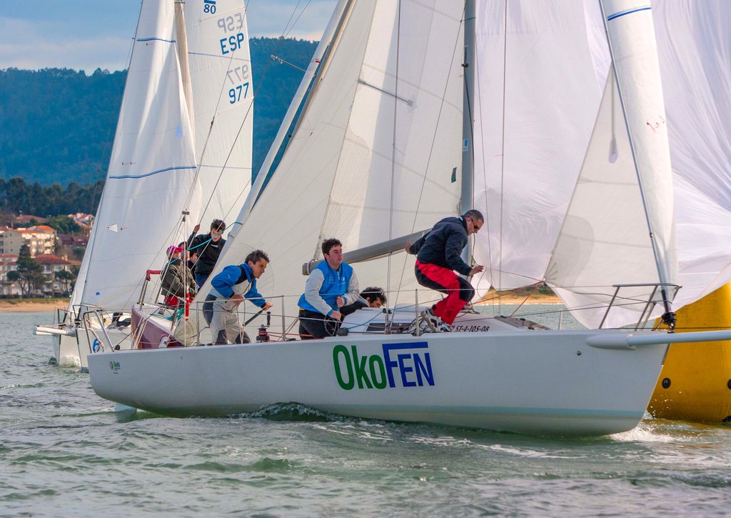 Tres novas mangas para a clasificación da Liga de Inverno Clase J80 e tres novas vitorias para o Okofen, que afianza o seu liderado separado xa a 18 puntos do resto de embarcacións. Séguenlle na clasificación o Miudo by Storax e o Virazón de Miguel Lago, patroneado este sábado por Javier Rey. Son segundo e terceiro no podio provisional, con 21 e 28 puntos respectivamente, e conseguirían a prata e o bronce do trofeo se manteñen os seus bos resultados.