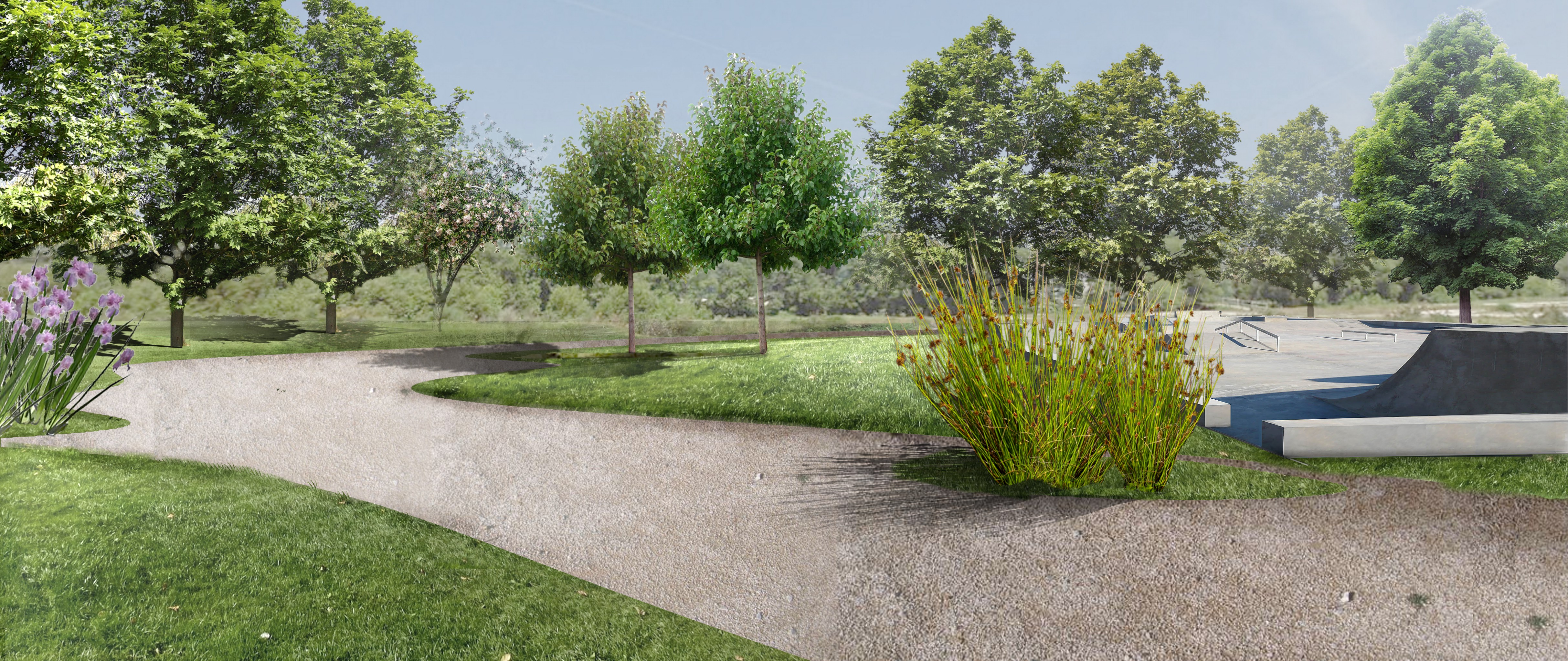 Este novo proxecto sí contempla a creación de núcleos de ocio e deportivos totalmente integrados na paisaxe e nos que destaca á creación dunha pista de atletismo e outra de skate, “dúas disciplinas nas que existe unha gran demanda social de instalacións», explica González. No eido deportivo, a esta pista de 450 metros de lonxitude e 6 rúas (á que nun futuro se lle poderá engadir no interior un campo de fútbol) súmase un circuito de running circular de 4,5 km ou a mellora do sendeiro existente. Estas dotacións atópase na parcela urbanizable destinada a usos deportivos, e ao seu carán haberá unha zona de recreo infantil e familiar con elementos de recreo como columpios, tirolina, circuito de bicicletas…