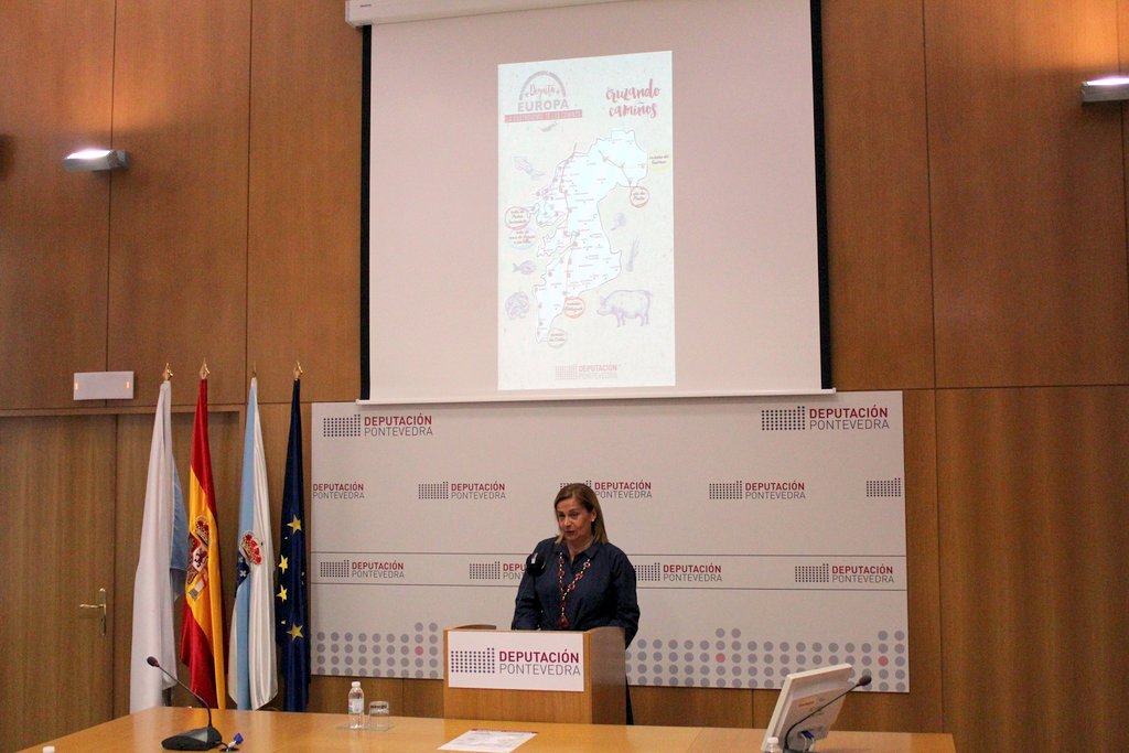 A Presidenta da Deputación de Pontevedra, Carmela Silva, presentou esta mañá en rolda de prensa a segunda edición de “Degusta Europa”, co lema “A gastronomía dos Camiños”, no que o alumnado dos dous centros de formación de hostalería máis importantes da nosa provincia elaborarán tapas con produtos adquiridos esa mesma mañá en seis mercados municipais dos concellos da provincia. A diferenza do ano pasado, no que se conmemorou a efeméride do Día de Europa (9 de maio), esta nova edición ten como fío condutor os Camiños Xacobeos que transcorren pola provincia de Pontevedra e vén encadrado na estratexia para 2017 do destino Turismo Rías Baixas.