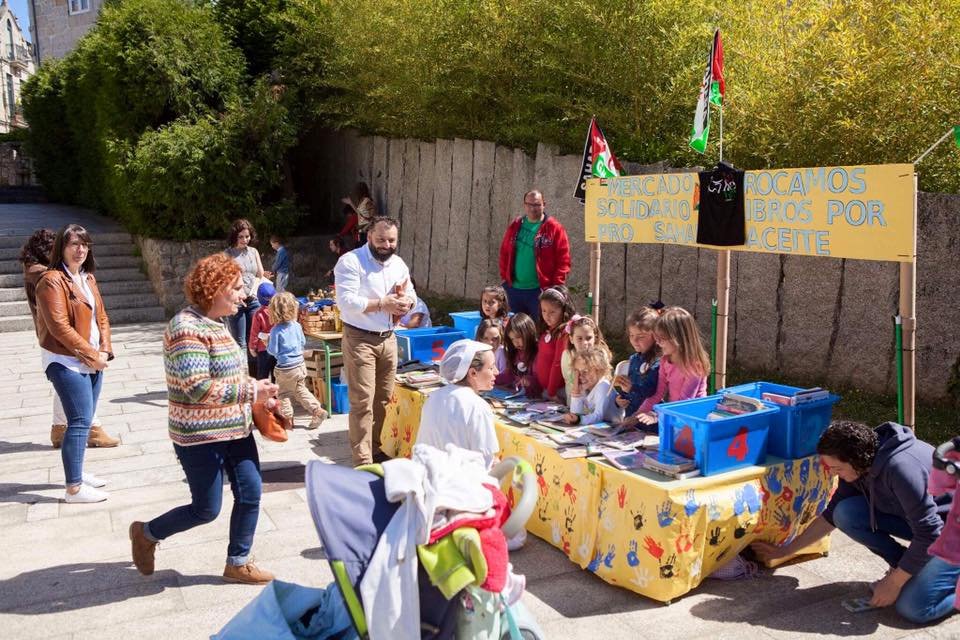 O CRA Antía Cal de Gondomar organizou este venres un Mercado Solidario no Parque da Coelleira contando coa colaboración do Concello e a ONG Solidariedade galega co pobo saharauí. A cambio dun litro de aceite de oliva, todos os que se achegaron a colaborar recibiron 3 contos infantís, entre eles o alcalde, Paco Ferreira, e a concelleira de Educación, Iria Lamas. Os pequenos e pequenas recadaron máis de 100 litros de aceite que irán destinados ao pobo saharauí.