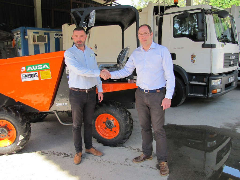 O concelleiro de Vías e Obras, José Ángel Bahamonde, asistiu este venres á entrega por parte do representante da empresa Baygar, Pablo Loureiro, do autovolquete que vén a renovar o existente e que comezará a funcionar de forma inmediata nas actuacións que estanse a levar a cabo no casco urbano e nas parroquias.