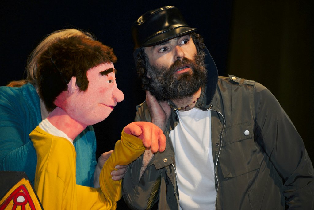 «A galiña azul» contiene cinco historias entrelazadas que transmiten mensajes tan importantes como la defensa de la diversidad lingüística, la importancia de las diferencias o la libertad de expresión. El libro toma la forma de una carta enviada a una niña y en él aparecen personajes inolvidables como Leoncio, un loco muy cuerdo que inventa cañones que disparan caramelos y bombas de la felicidad; la abnegada hormiga esquiadora que partió una pierna; o, por supuesto, la misteriosa gallina azul «con cinco plumas rojas en una ala», que pone huevos de colores y tiene alarmadas a las autoridades. La compañía responsable de la adaptación teatral emplea diferentes técnicas, como la narración oral, la manipulación de títeres o el clown.