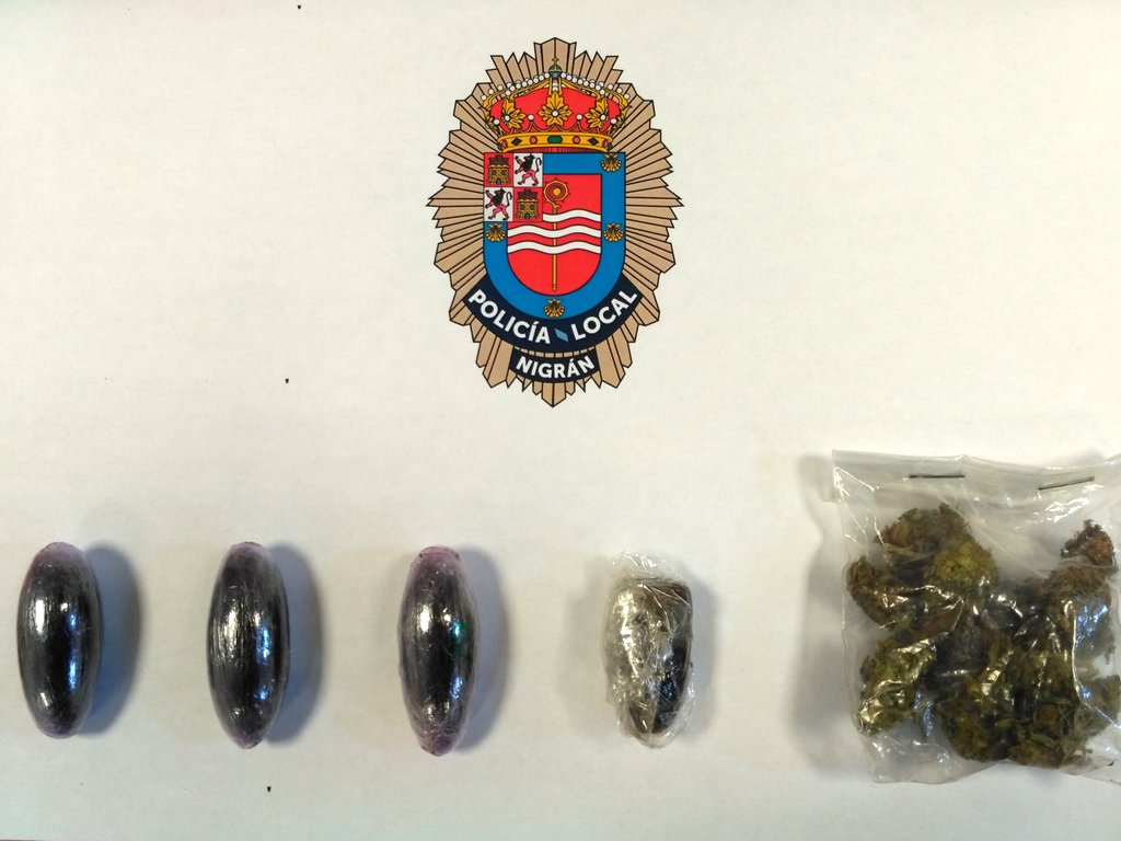 La Policía Local de Nigrán, realizando labores de seguridad ciudadana, la tarde del pasado domingo, incautó en un control rutinario diversas sustancias de cannabis a un joven de 30 años y vecino de Nigrán.