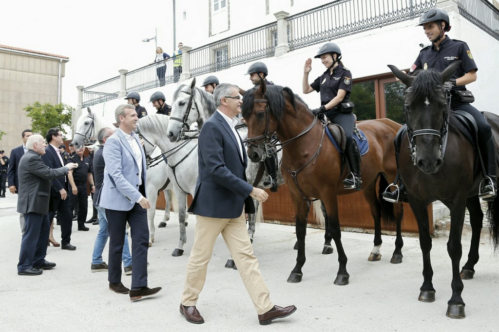 El vicepresidente de la Xunta, Alfonso Rueda, y el delegado del Gobierno, Santiago Villanueva, asistieron esta mañana a la presentación del grupo de la sección de caballería de la Policía Nacional desplazada a Galicia para prestar apoyo en el ámbito de la Operación Fuegos 2017.