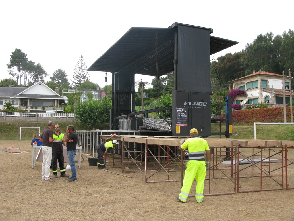 El Ayuntamiento dispondrá de 3.000 sillas para los asistentes y desde ayer se trabaja para instalar el mega-escenario en el campo de fútbol, que contará con pantallas gigantes, 200.000 wats de iluminación y 60.000 de sonido, además, se dispondrán sanitarios para el público.