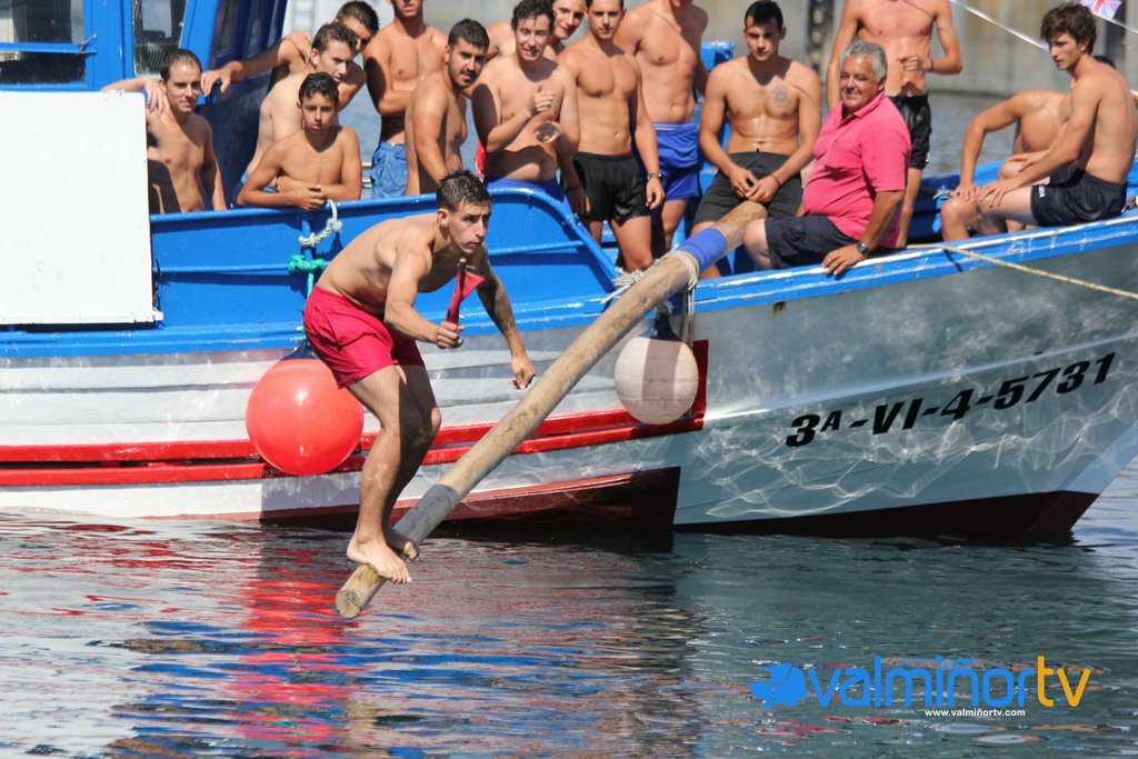 Ao redor de 40 mozos participaron este domingo no concurso de cucañas marítimas que tradicionalmente se veñen celebrando na Festa da Anunciada desde o pasado século XX, organizadas pola Concellería de Cultura de Baiona.