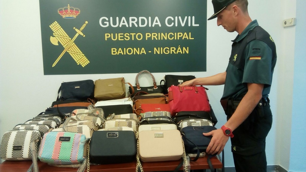 A actuación levada a cabo por efectivos do Posto Principal da Garda Civil, coa colaboración da Policía Local de Nigrán, produciuse por mor dunha denuncia presentada por un coñecido fabricante de bolsos, con domicilio social en Vigo.