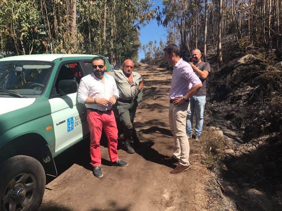 El alcalde de Gondomar, Paco Ferreira, recorrió la zona afectada junto con su homólogo de Tui, Enrique Cabaleiro, y personal del servicio de extinción de incendios.