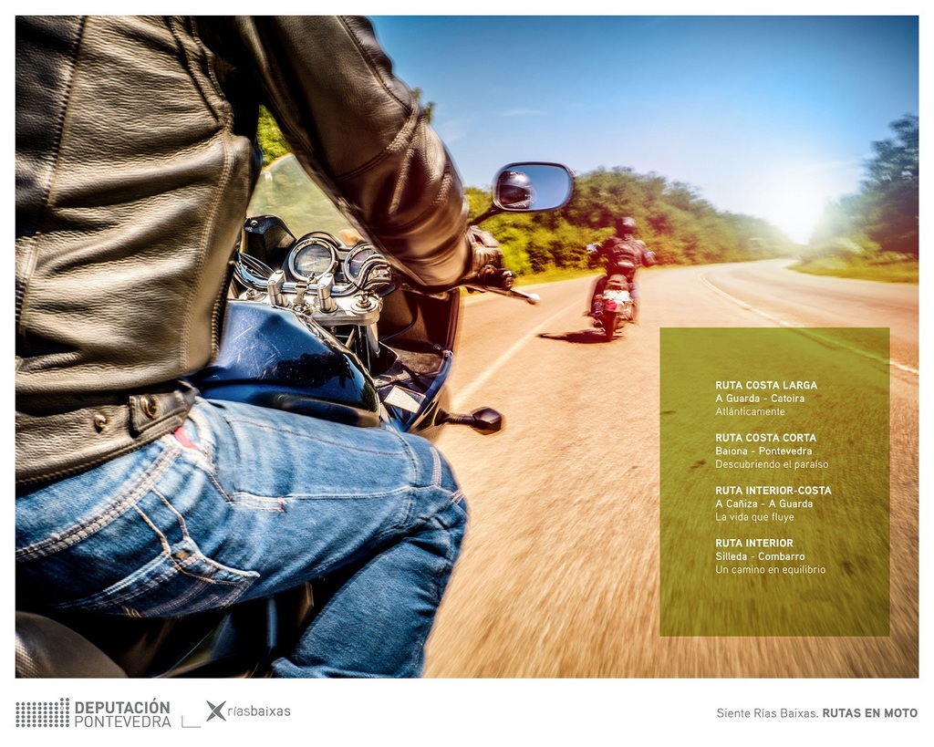 La primera de las rutas es la «Ruta Costa longa», que transcurre entre A Guarda y Catoira. De este modo, señaló Santos Héctor, los y las motoristas conocerán «los molinos de O Folón y de O Picón, las Pozas de Mougás, los ayuntamientos de Baiona, Vigo, Redondela, Pontevedra y Sanxenxo, la playa de A Lanzada, O Grove, la Illa da Toxa, Cambados, A Illa de Arousa y Vilagarcía de Arousa», además de los ayuntamientos de inicio y de llegada.
