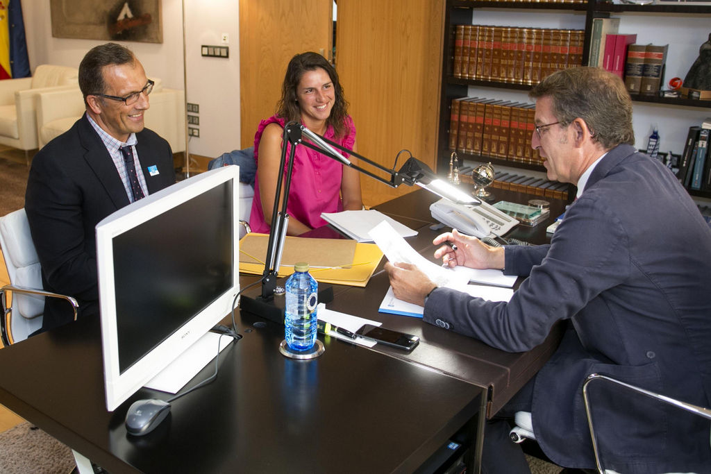 O máximo mandatario galego recibiu ao alcalde de Baiona, Ángel Rodal, e a concelleira de Urbanismo, Ana Simóns, en San Caetano, despois de que o rexedor solicitara o pasado mes unha xuntanza na que poder presentar diferentes iniciativas a desenvolver na Vila de forma inmediata.