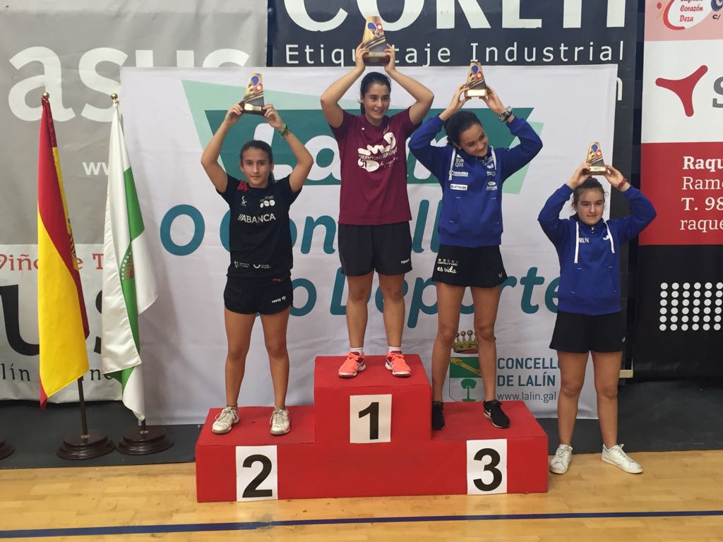 Deixamos para o final a sobresaliente actuación de Luisa Pintos, que pasou grupos gañando todas as súas partidas e xa no cadro foi pasando roldas ata chegar á gran final do torneo onde nun emocionantísimo e disputadísimo partido perdía coa cabeza de serie número un, Andrea Chaves, de Cantabria, 3-2 e 11-9 no quinto set onde tivo vantaxe de 5-2.
