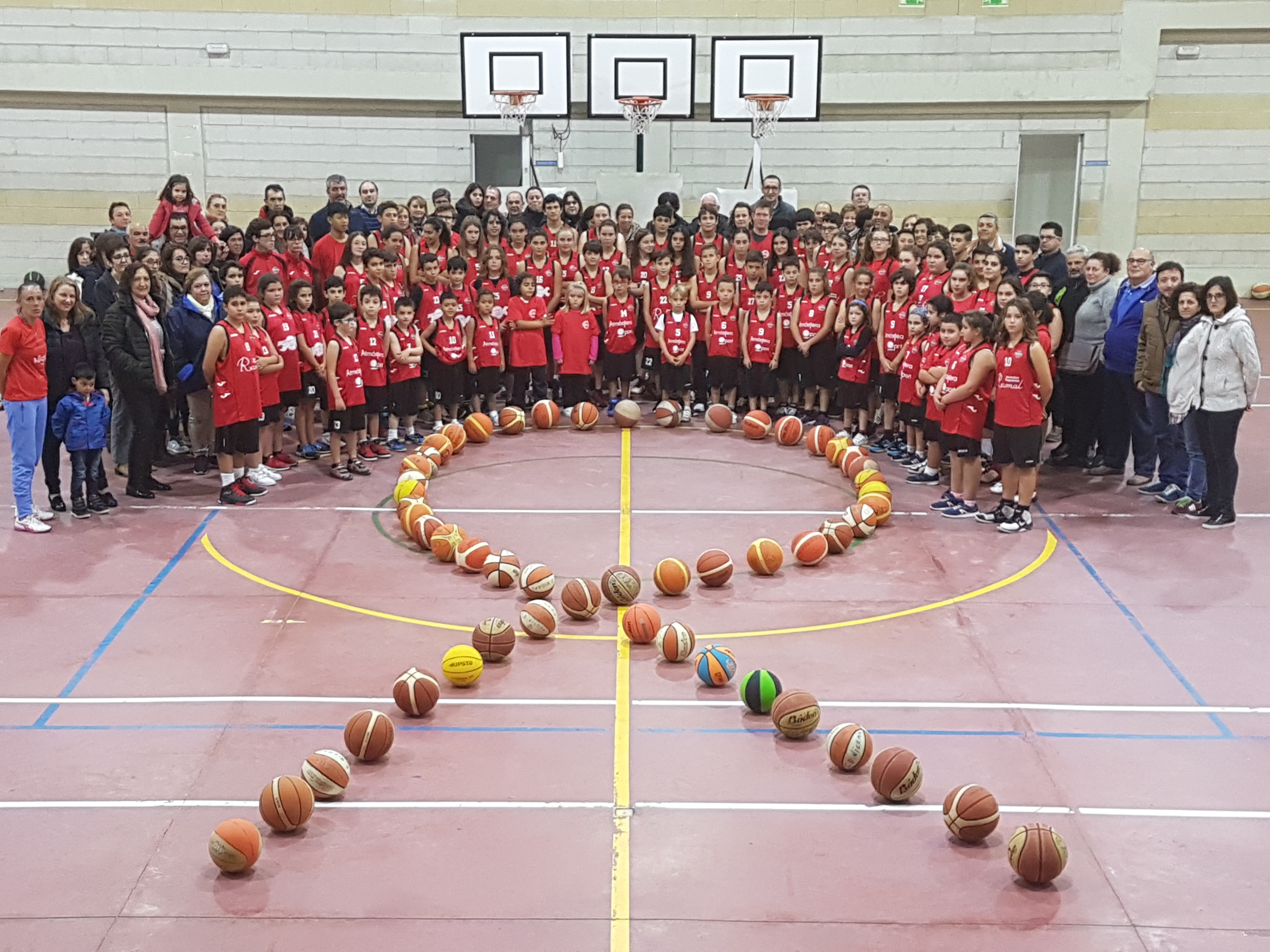 La foto, en la que participan jugadores y familias del club, es un homenaje a las víctimas de esta lacra social. Un total de 55 balones en la pista dibujando un gran lazo, un balón por cada una de las mujeres y niños y niñas asesinados este año por la violencia machista.