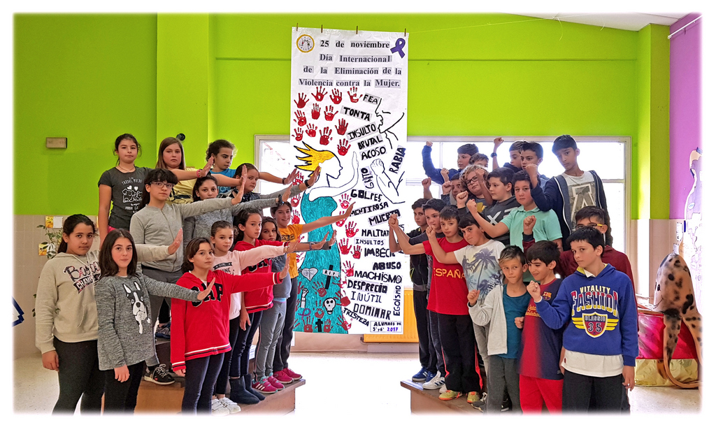 Durante la semana del 20 al 24 de noviembre, los alumnos de quinto y sexto de primaria del CEIP Mallón de Nigrán elaboraron un mural para alertar sobre la lacra de la violencia machista en nuestros días, con motivo del Día Internacional para la Eliminación de la Violencia contra la Mujer, que se celebra el 25 de noviembre. Este mural sólo es el punto conmemorativo de un proyecto que continúa, porque desde el centro quieren que los alumnos estén sensibilizados con la problemática existente y trabajan este tema durante el curso, recopilando noticias extraídas de periódicos para seguidamente conformar un libro para la biblioteca del centro y mediante la sensibilización en el aula con debates y puestas en común, y análisis de noticias.