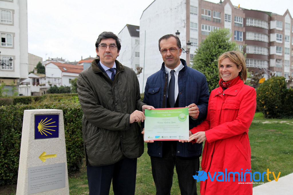 A directora de Turismo de Galicia, Nava Castro, acompañada do delegado territorial da Xunta en Vigo, Ignacio López-Chaves, entregaron hoxe ao alcalde de Baiona, Ángel Rodal, o distintivo de Sustainable Destination Top 100, un recoñecemento outorgado polo organismo internacional Green Destinations que posiciona a este municipio galego entre os mellores destinos sustentables do mundo.