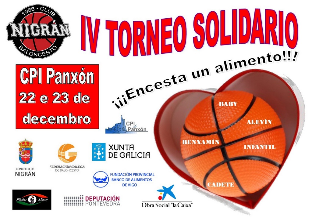 El Club Baloncesto Nigrán está ya inmerso en la organización de la IV edición del Torneo Solidario Encesta un Alimento, que se desarrollará en el CPI de Panxón los días 22 e 23 de diciembre. Más de 50 equipos ya han confirmado su asistencia al evento. Se trata del torneo más grande organizado por este club de baloncesto nigranés que llenará el Pabellón del Colegio de Panxón durante dos días.