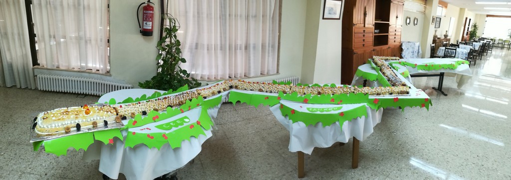 Baixo a dirección do profesor de cociña do CEE Álvaro Rey, os alumnos, as nais e pais dos centros elaboraron unha “Sabanduxa” de mazapán de oito metros de lonxitude que se degustou como postre o día 21 de decembro na comida de Nadal.
