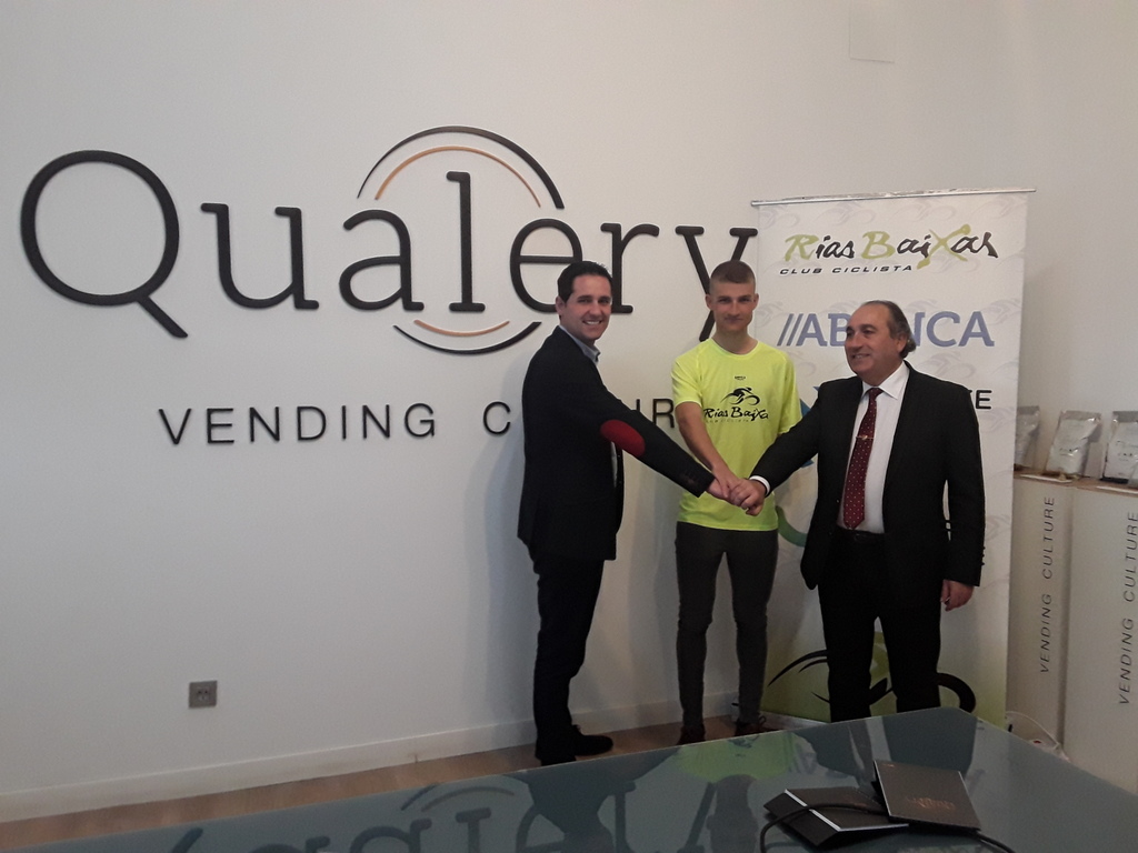 Escobar se estrenó como miembro del conjunto gallego visitando las instalaciones de Qualery, la empresa cafetera con sede en Toledo que se ha incorporado como sponsor al proyecto impulsado por José Luis Chamorro. Allí, el presidente y su nuevo corredor fueron recibidos por Saúl Álvarez, CEO de Qualery.