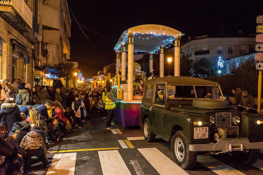 A comitiva estivo formada pola Banda de Bombos e Tambores e a Rondalla e os Abandeirados da Asociación de Veciños “Galiñeiro” de Vincios, encargados tamén da elaboración das tres carrozas, ademais dos Paxes Reais, pastorcillos e trasgos, repartindo durante todo o percorrido 1.000 quilos de caramelos aptos para celíacos.