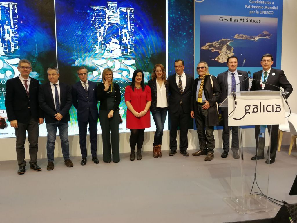 El Alcalde de Baiona, Ángel Rodal, arropado por la Concejala de Turismo, Beatriz González, y la Directora Xeral de Turismo de Galicia, Nava Castro, presentó este jueves en Fitur la importante efeméride que se celebrará en la Villa durante el año 2018: el 525 aniversario de la llegada de la Carabela Pinta a este puerto.