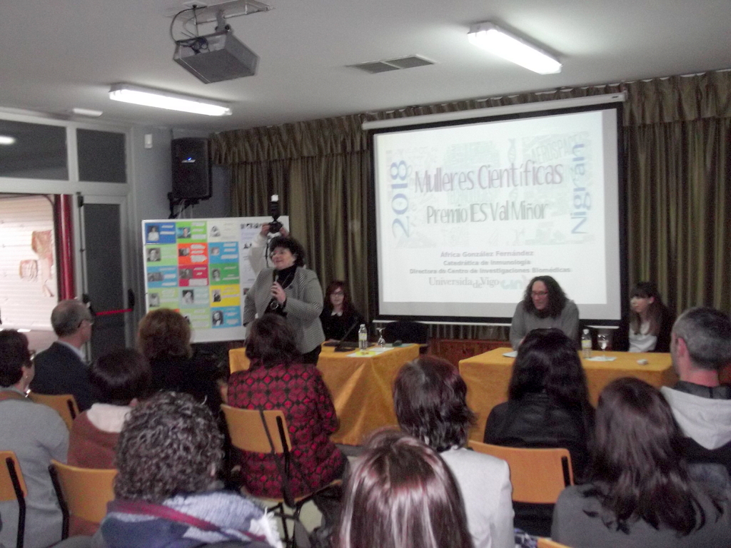 A científica galardoada este ano 2018 co premio Muller Científica do IES Val Miñor é África González Fernández. Actualmente é a presidenta da Sociedade Española de Inmunoloxía e catedrática da Universidade de Vigo, onde tamén dirixe o Centro de Investigación Biomédica. O seu traballo actual céntrase en desenvolver unha vacina para tuberculose, así como en Nanomediciña o estudo da toxicidade de nanomaterias. Ademais da súa carreira investigadora, África González destaca tamén na súa faceta emprendedora como cofundadora de Nanoimmunotech, unha compañía que actualmente desenvolve nanopartículas e produtos de diagnóstico para farmacéuticas e empresas biotecnolóxicas de 45 países. Recentemente, foi incluída entre as 12 finalistas dos premios europeos ás mulleres innovadoras que concede a Comisión Europea.