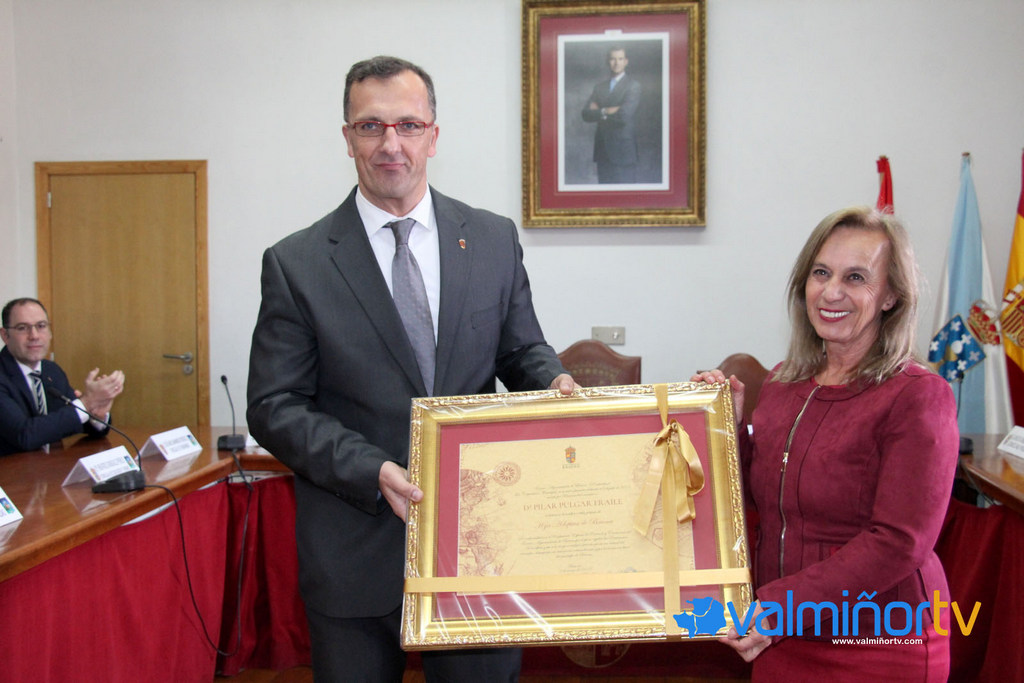 El Salón de Actos del Ayuntamiento de Baiona acogió este viernes el acto de entrega de la distinción honorífica de “Hija Adoptiva” a título póstumo a Pilar Pulgar Fraile, dentro de los actos de la Fiesta de la Arribada. La concejala de Cultura de Palos de la Frontera, Teresa García, recogió el reconocimiento de manos del alcalde, Ángel Rodal.