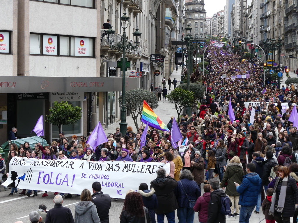 Ao mesmo tempo, incidiu en que a masiva participación que rexistrou a marcha de Vigo é un anticipo do que vai suceder en todo o país o vindeiro 8 de marzo, Día Internacional da Muller Traballadora, xornada na que hai convocada unha folga de mulleres e numerosas mobilizacións ao longo do día. “Temos que dar unha nova lección e volver a visibilizarnos: mulleres novas e maiores na rúa baixo unha mesma reivindicación; temos que secundar a folga laboral, de coidados e de consumo para transformar a vida das mulleres”.