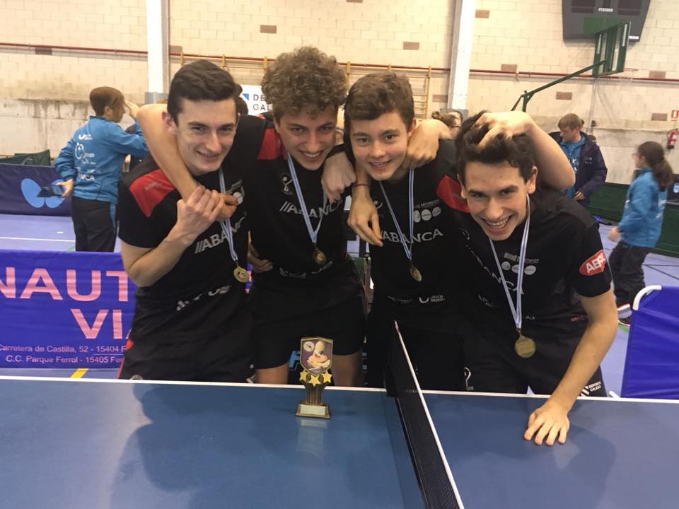 El Pabellón del Colegio de A Solaina en Narón acogió los días 27 y 28 de marzo el XXXI Campeonato Gallego Juvenil de Tenis de Mesa. El equipo del AD Vincios formado por Andrés Torres, Mario Cebreiro, Simón Casal y Nicolás González se hizo con la medalla de oro, proclamándose campeón gallego de la categoría. Además, Mario y Simón se proclamaron subcampeones en dobles, donde Nicolás y Andrés se llevaron la medalla de bronce como semifinalistas. Andrés consiguió otro bronce en individual y finalmente, Luisa Pintos se proclamó subcampeona en dobles junto con Judith Cobas del Arteal TM. En individual logró llegar hasta los cuartos de final.