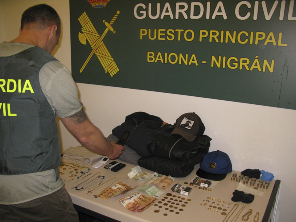 Los cuatro ocupantes del vehículo fueron inmediatamente detenidos al tener conocimiento de que tanto las joyas como el dinero habían sido sustraídas durante la mañana de ese mismo día en el interior de un domicilio habitado en la localidad de a Guarda, en un momento en el que no había nadie en la vivienda.