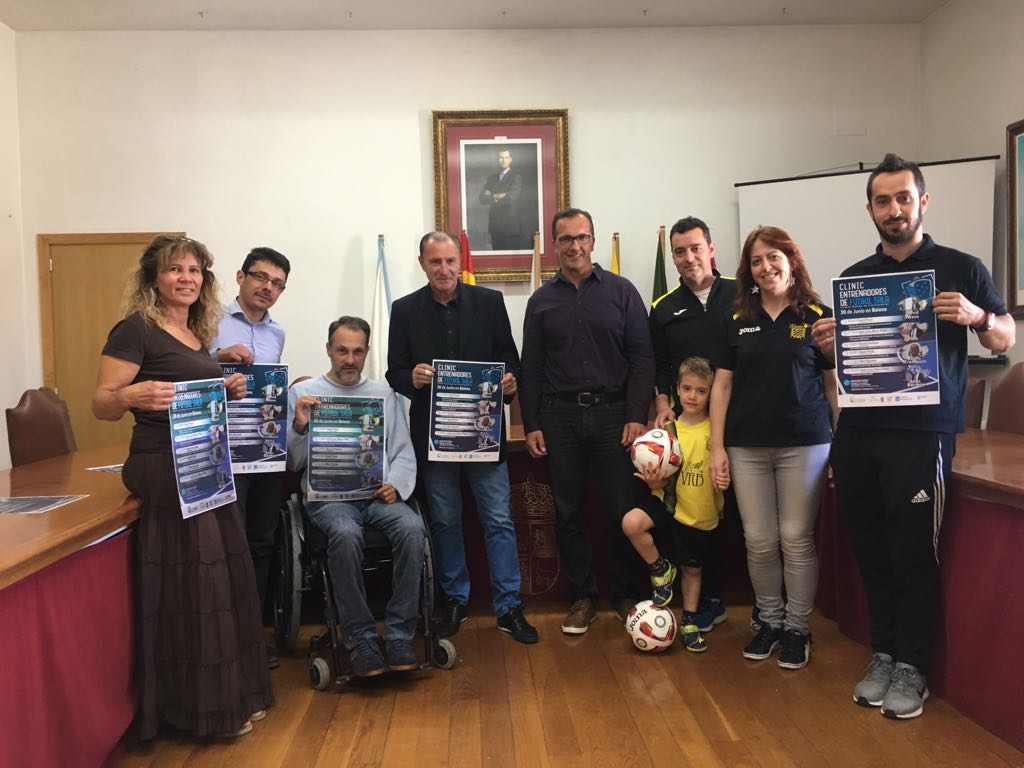 El Ayuntamiento de Baiona acogió este viernes la presentación del Clinic para entrenadores de fútbol sala que organiza el Comité Gallego de Entrenadores con la colaboración del propio Ayuntamiento de Baiona y el club local Baíña Fútbol Sala. En el acto estuvo presente el alcalde, Ángel Rodal, la concejala de Deportes, María Jesús Martíns, el presidente del Comité Gallego de Entrenadores, Pichi Lucas, y el presidente del Baíña FS, Santi Rodríguez.