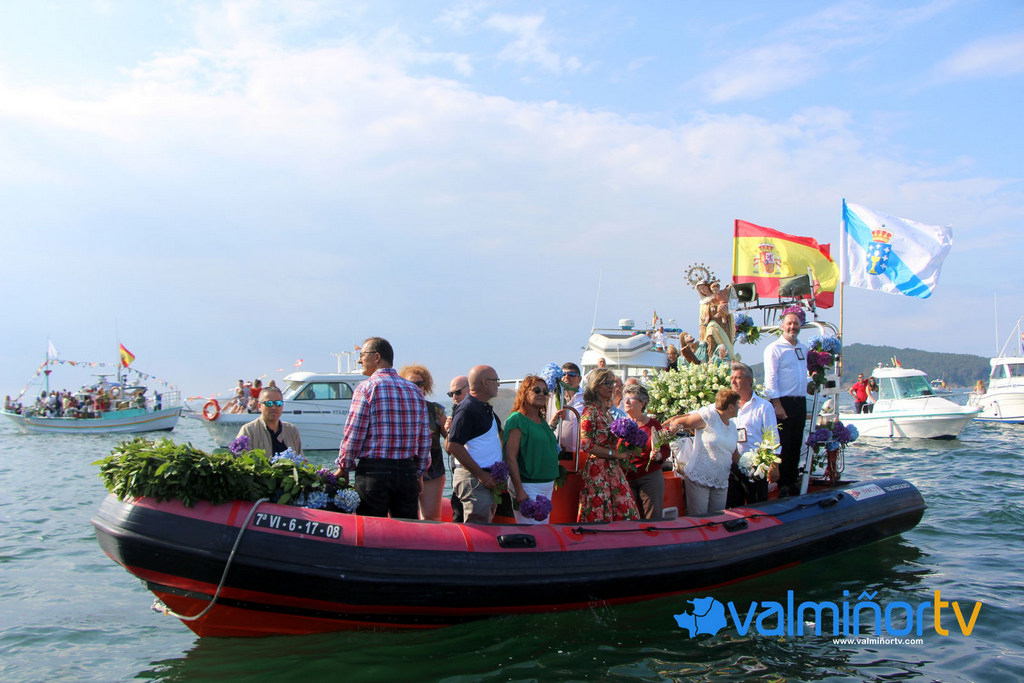 A las 18:00 horas la imagen de la Virgen del Carmen salió desde la Capilla de la Misericordia hasta el muelle, para acto seguido hacer el recorrido habitual por la bahía de Baiona, acompañada por decenas de embarcaciones. Ya frente a las costas de Monte Boi, se procedió a la ofrenda floral, no sólo por los marineros, sino por todo aquel que falleció en el mar, en la que participaron miembros de la Comisión, el párroco de Santa María, Manuel Salcidos, el alcalde, Ángel Rodal, y el presidente de Aceba, Marcos Comesaña.