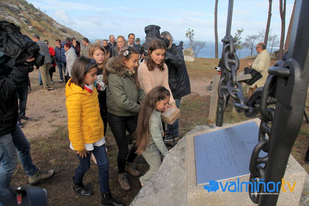 Finalmente, os nenos e nenas depositaron no monumento unha caixa cos seus desexos, dando por inaugurada oficialmente a escultura, e o grupo de gaitas “A Seneira” de Baiona interpretou un tema como broche final ao acto.