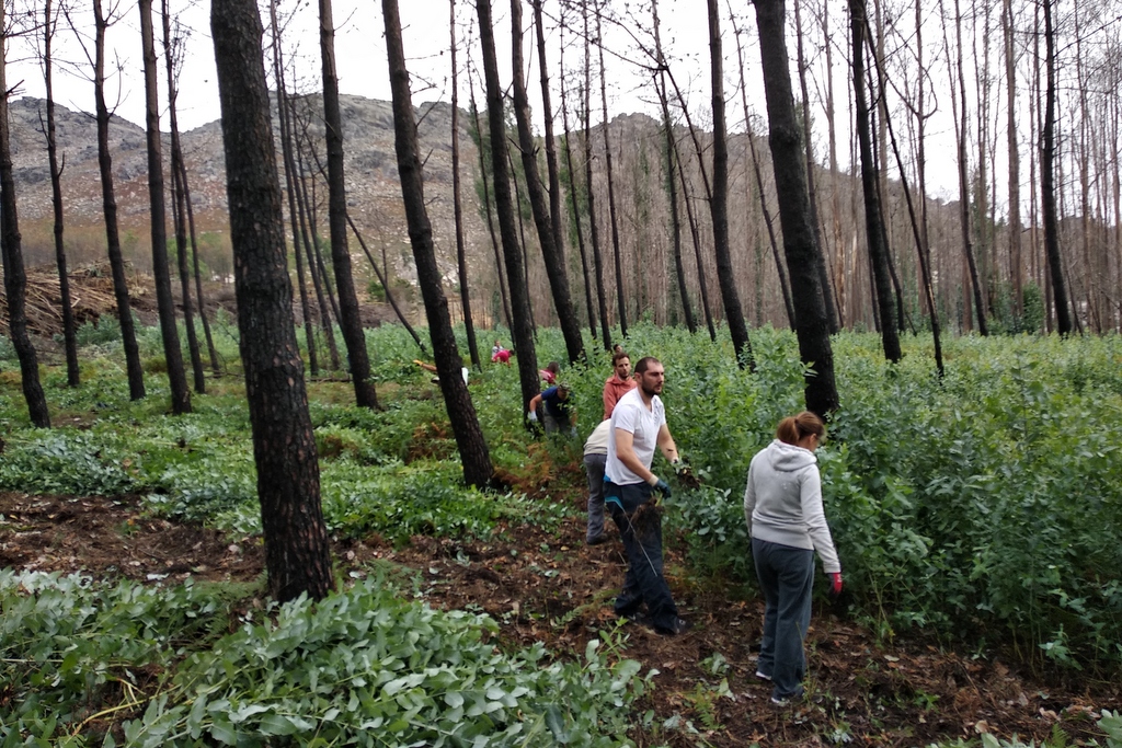 La respuesta no se hizo esperar, y ya fueron muchas las personas que a título particular o convocadas por las distintas entidades, colaboraron con la Comunidad de Montes de Vincios en la retirada de eucalipto en diversas zonas del Galiñeiro (Santa Lucía, Área Recreativo, aledanos dos petroglifos de Auga da Laxe y Pereirales). Así, en el mes de octubre y lo que va de noviembre, además de comuneros, comuneras y Junta Rectora de la comunidad, estuvieron retirando eucaliptos alumnos y alumnas del IES Escolas Proval, el grupo de Voluntariado Medioambiental del Ayuntamiento de Gondomar, componentes de la Agrupación Deportiva Vincios, alumnado de 1º de la ESO del IES Terra de Turonio, alumnado y profesorado del CEIP Serra- Vincios, componentes del Coro Cantares do Brión, componentes del Club BTT + Enduro, directiva de la Asociación de Vecinos Galiñeiro, directiva de la Comunidad de Augas do Galiñeiro, componentes y directiva del Club Fútbol sala Vincios (Cereixa), socios y directiva de la Agrupación Musical de Vincios y componentes de Montañeros Celtas. En total participaron unas 600 personas, que retiraron el eucalipto en 80 has aproximadamente de monte vecinal, en algunas zonas con una densidad de entre 80 y 100 pies por metro cuadrado. A todos ellos le agradecen enormemente su colaboración.