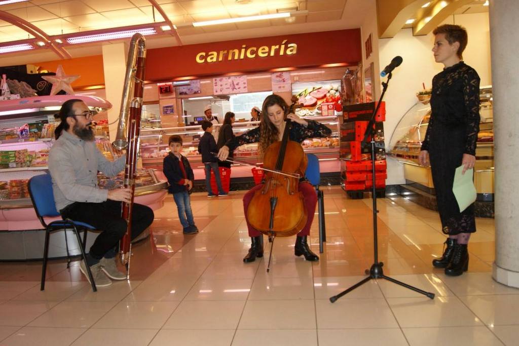 Dentro de las actividades de la I Semana Poética Victoriano Taibo, este miércoles tuvo lugar en el Supermercado Froiz de Gondomar la celebración de un «mini-concierto recital» con la breve duración de cinco minutos. Colaboraron en esta actividad Silvia Penas (poesía), Margarita Marino (chelo) y David Arroyos (contrafagot).