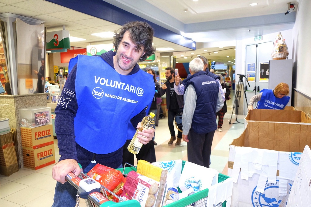 David Amor, padrino del Banco de Alimentos de Vigo, animó hoy a la ciudadanía a donar comida durante toda esta jornada y mañana, sábado, porque “hay mucha gente necesitada cerca, con muy poco podemos hacer mucho”. Así lo indicó en la primera jornada de la Gran Recogida Solidaria (GRS2018) desde el supermercado Froiz ubicado en la Plaza Elíptica de Vigo donde estuvo ayudando, como un voluntario más, y facilitando todas las donaciones que las personas le fueron entregando.