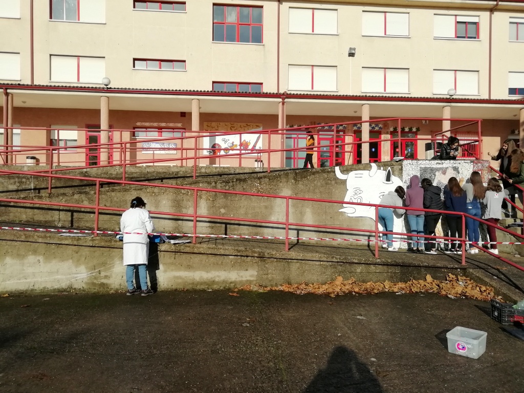 Nesta iniciativa participaron un total de 14 alumas e alumnos de segundo de bacharelato que cursan a especialidade de artes. Na parede elixida para a realización deste proxecto xa había unha mostra dun “Guernica” cuxo autor é descoñecido, polo que a razón de escoller esta temática foi darlle continuidade á obra preexistente, todo isto en colaboración coa artista Noemí Núñez. Así, e tras as distintas sesións formativas das que consta o programa, foise elaborando o mural que se presenta mañá ante o corpo docente e o resto do alumnado do centro.