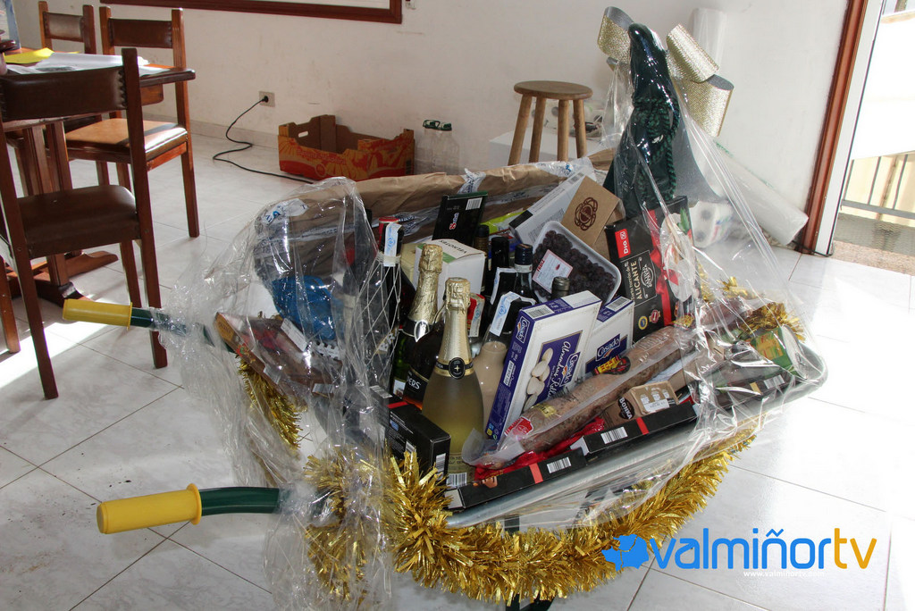 A carretilla de Nadal está valorada en máis de 400 euros, con entre outras moitas cousas, turrón, pasas, mazapán, améndoas recheas de cacahuete, un xamón ou unha folla de bacallau, e todo tipo de bebidas, desde champaña ata sidra pasando por licor. As rifas, ao prezo de 1 euro, véndense de casa en casa, aínda que hoxe xoves tamén poden adquirirse na cantina da comisión na Romaría de Santa Lucía.