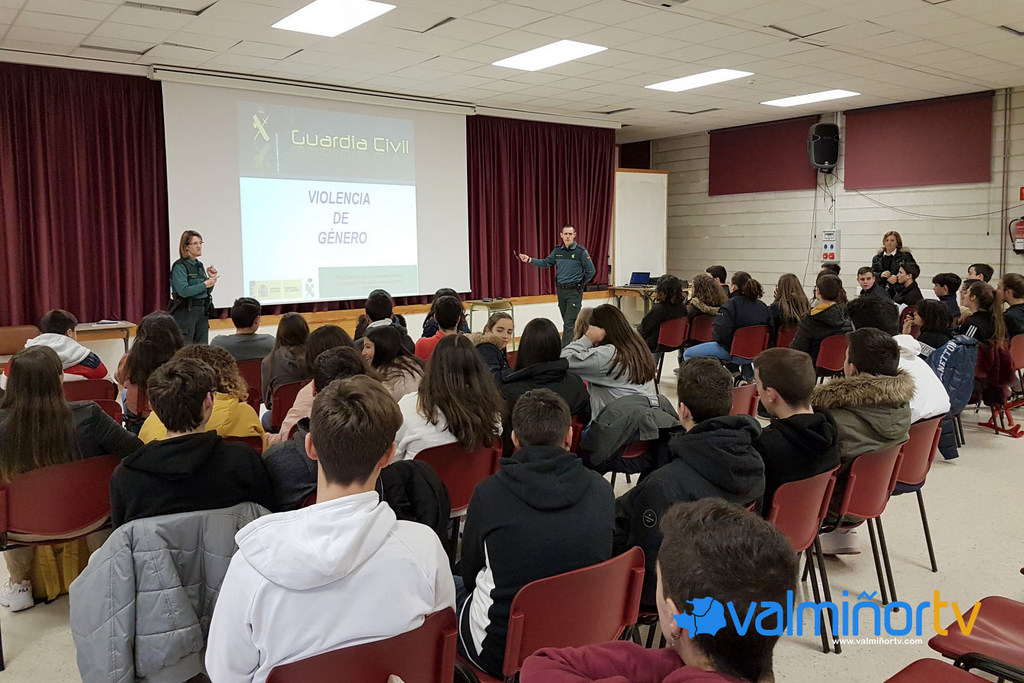 Medio centenar de alumnos y alumnas de 2º, 3º y 4º de ESO del CPI Arquitecto Palacios de Panxón asistieron este lunes por la tarde a una charla informativa sobre violencia de género, impartida por dos efectivos de la Guardia Civil del Puesto Principal de Baiona-Nigrán. Uno de los agentes, José Ángel Fernández Fontenla, destacó que el objetivo principal de la charla es que sepan identificar cuándo se produce violencia de género, “ya que los jóvenes lo tienen un poco difuminado, lo identifican siempre como agresión física o sexual, pero hay otras situaciones como el control”.