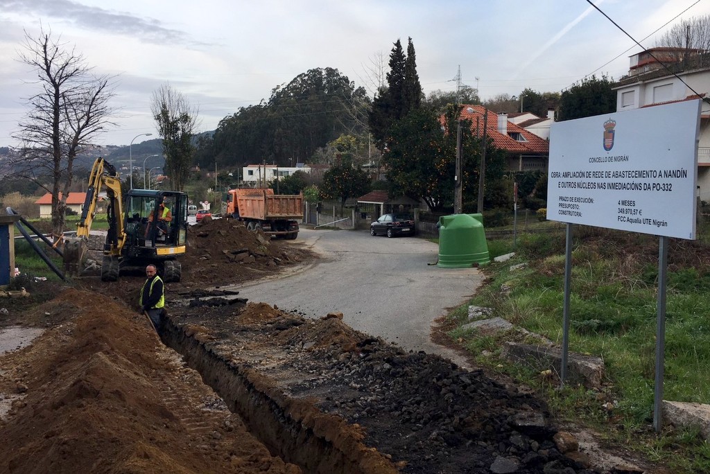 El proyecto de ampliación de la red de abastecimiento se lleva adelante después de que Augas de Galicia instalara una canalización general que discurre a lo largo de 2.500 metros desde el torreiro de As Angustias hasta el Centro Cultural A Camoesa (PO-332, calle de Os Pazos) y que posibilita ahora conectar estas nuevas redes secundarias a las poblaciones de la zona. La nueva canalización, de más de 5.000 metros, se realizará con conexiones directas a la tubería general instalada en la PO-332 y, al mismo tiempo, se instala un grupo de presión que permitirá elevar el agua aparte más alta (Nandín). Por otra parte, los trabajos de ampliación de la red de saneamiento consisten en dotar de 665 metros de colector de PVC de 315 mm de diámetro, al que se engancharán los vertidos de las viviendas ubicadas en sus cercanías y que actualmente emplean fosas sépticas, resolviendo así un largo problema de infraestructura básica y fundamental.