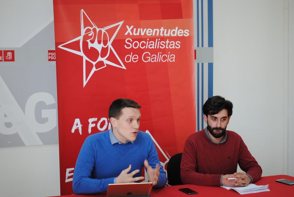 O secretario xeral das XSG, Aitor Bouza, compareceu acompañado do coordinador provincial de Pontevedra, Alejandro Figueroa que informou de que “estamos en marcha para as vindeiras campañas electorais. Queremos trasladarvos que estamos saíndo á rúa para recadar información das necesidades reais da mocidade.