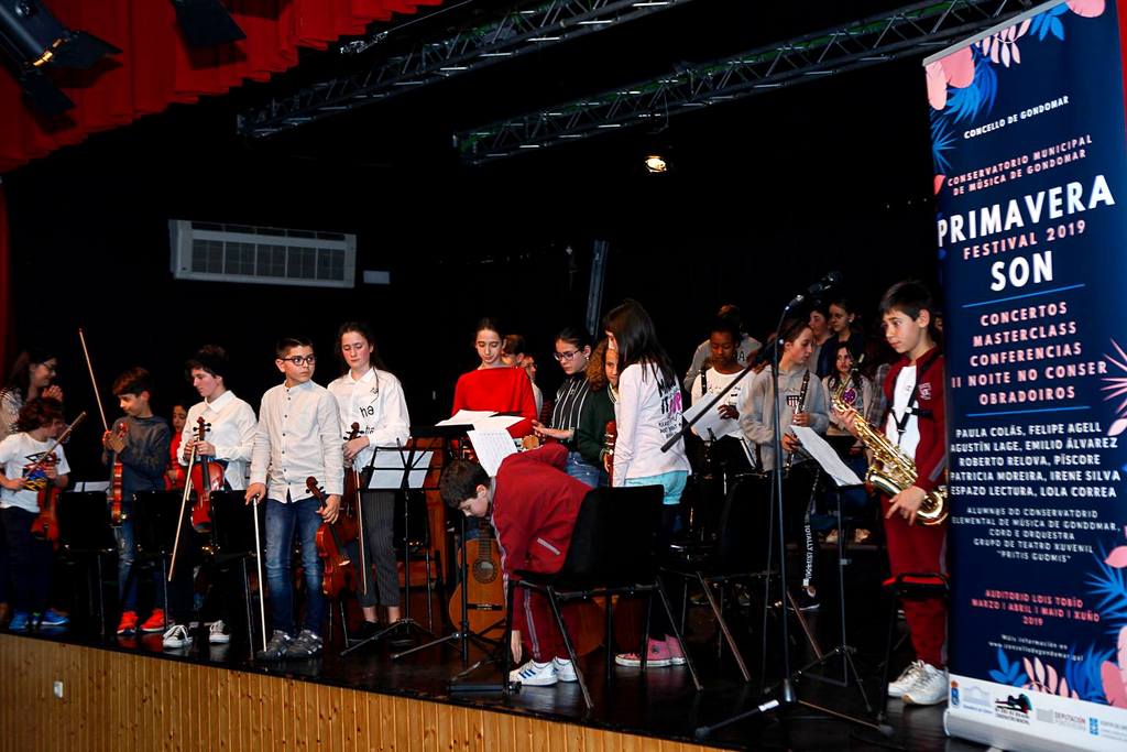 El Conservatorio Municipal de Gondomar presentó ayer en el Auditorio Lois Tobío la programación del Festival Primavera Son 2019. Desde marzo hasta junio el Conservatorio presentará varias actividades como conciertos, masterclass,conferencias, II Noche en el Conser, y talleres, entre los que destacan la participación de los profesores Paula Colás, Felipe Agell, Agustín Lage y Emilio Álvarez, el conferenciante Roberto Relova, que hablará en cuatro sesiones de la «A (de)construcción de los grandes personajes femeninos desde la música, el mito y la historia», y el concierto del grupo cómico de percusión «Píscore» con el espectáculo «Concierto Singular». También colaborarán en el festival Patricia Moreira, con una sesión de Yoga para niños, la artista plástica, Irene Silva Xiráldez, las alumnas y alumnos del conservatorio de música, y el grupo de teatro juvenil «Pritis Guomis». Este festival está organizado por la Concejalía de Cultura, dirigida por Nuria Lameiro.