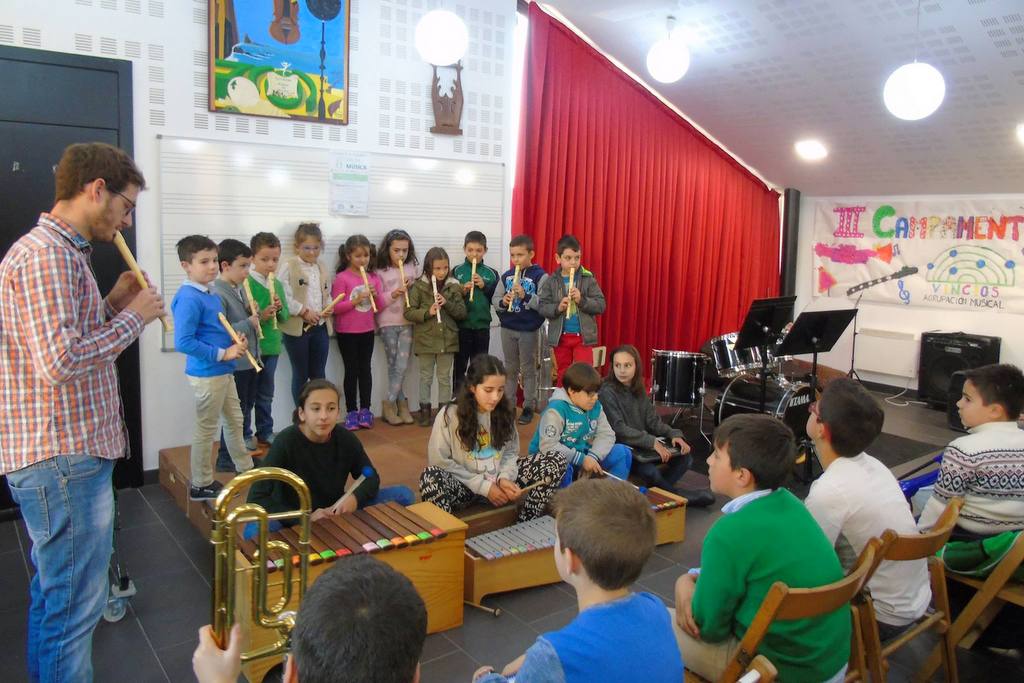 La Escuela cuenta con un personal de 12 profesores que imparten clases de Música y movimiento para niñas y niños a partir de los 4 años, Lenguaje Musical, grupo de adultos y 12 especialidades instrumentales. Tiene matriculados 130 alumnos de todas las edades que, según su nivel de estudios, se integran en las bandas Infantil, con 33 componentes, y Juvenil, con 29. Todos ellos estudian con ilusión para llegar a formar parte de la Banda de Música de la Agrupación Musical de Vincios.