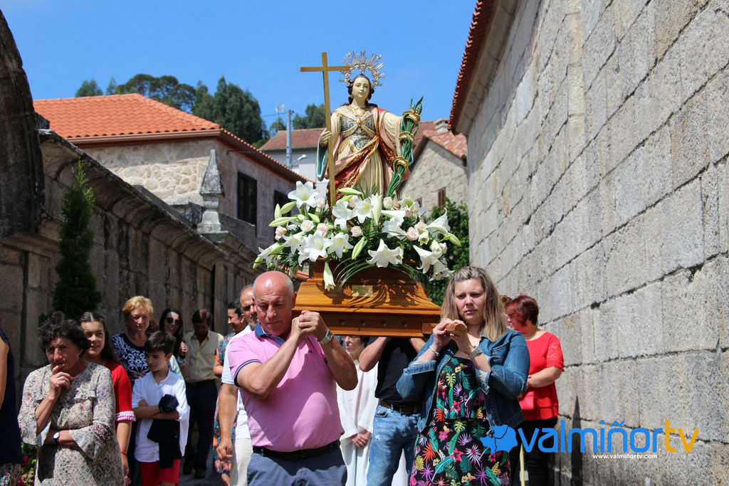 El domingo 14, al alba, se lanzarán 21 salvas en honor a la mártir Santa Marina. Tras la entrada en la parroquia de la Agrupación Musical “Lira” de San Miguel de Oia, a las 12:00 del mediodía comenzará la Misa Mayor, cantada por la Coral Ecos do Castelo de Parada de Miñor, seguida de procesión con Santa Marina, Santa Marta y Nuestra Señora del Carmen. A las 21:00 horas apertura de la fiesta por la Banda de Música “Lira” de San Miguel de Oia y a continuación, gran actuación de la orquesta Olympus.