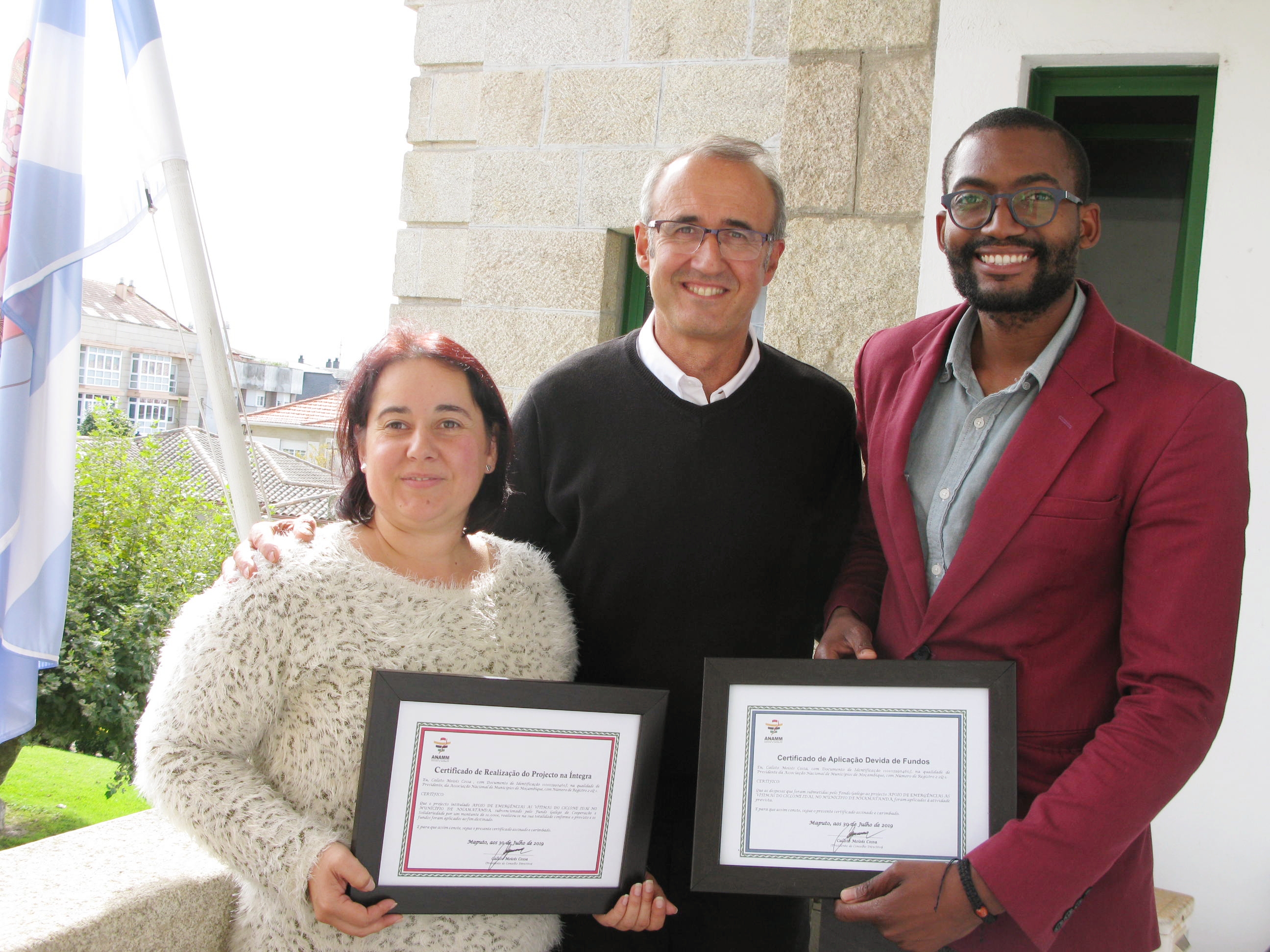 O Fondo Galego ten apoiado en Mozambique unha decena de proxectos que nos últimos anos se veñen intensificando a partir da liña de traballo iniciada coa ANAMM. A última actuación levada a cabo foi a axuda de emerxencia facilitada á vila de Nhamatanda, gravemente afectada polo paso do devastador ciclón Idai. Ademais, os sistemas de abastecemento de auga construídos no municipio de Nhamayábue -para evitar que a veciñanza fose atacada por fauna salvaxe ao collela no río- resultaron prexudicados polas fortes chuvias, polo que se están levando a cabo tarefas de reparación. Doutra banda, vén de rematar o proxecto para previr doenzas, adiccións e embarazos precoces na mocidade empregando como ferramenta o deporte, da man da Fundaçao Encontro. Precisamente, Onofre Muianga entregou ao presidente do Fondo Galego sendos certificados que avalan que a axuda económica aportada polo Fondo foi empregada ao 100% nos proxectos mencionados.