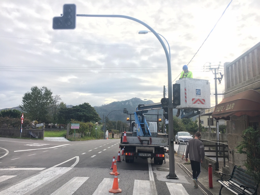 O Concello de Nigrán iniciou este mércores a instalación da regulación semafórica no cruce da Rúa dos Pazos con Baleazas e Pateira, no barrio de A Tarela, co fin de mellorar a seguridade viaria nun tramo especialmente perigoso, con alta sinistralidade, e empregado polos autobuses escolares. Os semáforos colocados son os que se atopaban na intersección da PO-340 con Donas, onde esta semana quedaron anulados ao realizar a Xunta unha glorieta. “A demora das obras na rotonda da estrada A Ramallosa-Gondomar impediu que os puidésemos colocar antes”, subliña o alcalde, Juan González.