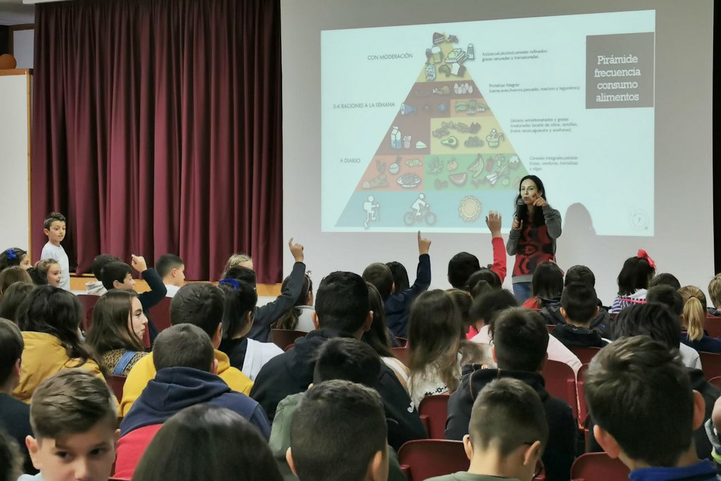 Esta mañá os alumnos e alumnas do CPI Plurilingüe Arquitecto Palacios e do CEE de Panxón asistiron a unha charla coa nutricionista Amil Viéitez, creadora da dieta coherente. Unha vez terminada a charla os alumnos puideron facerlle diferentes preguntas sobre os alimentos, diferenzas entre peixe azul e branco, que tipo de pan é mellor,como metaboliza o noso corpo o azucre dos alimentos, etc.