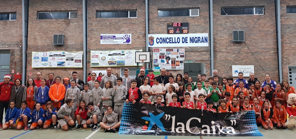 El Pabellón de Panxón acogió ayer la VI edición del Torneo Encesta un Alimento, que se ha convertido ya en una cita obligada de la Navidad en Nigrán. Se trata de un torneo organizado por el Club Baloncesto Nigrán en colaboración con la Federación Gallega de Baloncesto, el Concello de Nigrán, Caixabank y Frutas Nieves, que ya colaboró en las anteriores ediciones aportando fruta para todos los niños participantes. Un torneo muy especial, que además de lo deportivo tiene un componente solidario muy importante, pues cada uno de los jugadores y jugadoras que participan aportan alimentos no perecederos para ser entregados a familias de Nigrán.