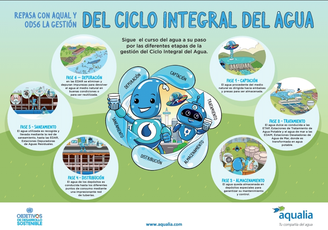 Aqual traballa para lograr que a auga limpa e o saneamento estean ao alcance de todas as persoas no mundo. ODS6 é o encargado de poñer os medios para coidar da auga, dando a coñecer os seus obxectivos para lograr que máis e máis persoas traballen nesta dirección.
