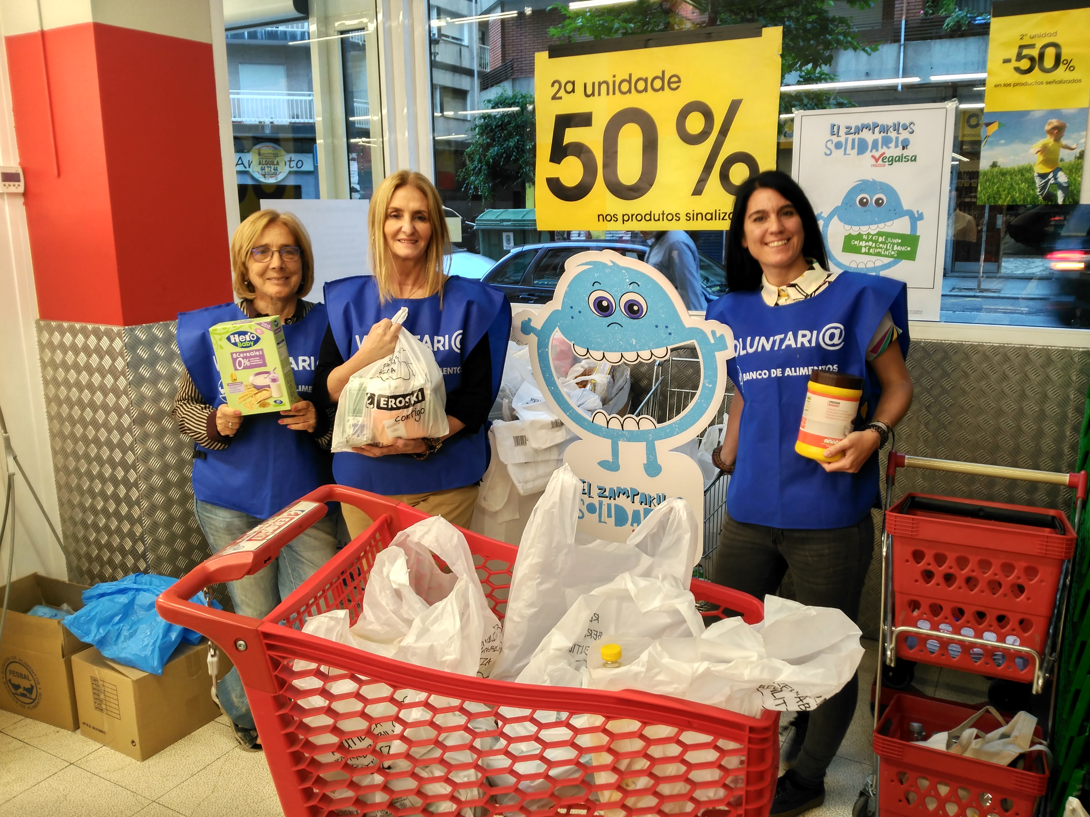 La Fundación Provincial Banco de Alimentos de Vigo movilizará este fin de semana a unos 500 voluntarios que participarán en El Zampakilos Solidario, campaña promovida por cuarto año consecutivo por parte de Eroski-Vegalsa.
