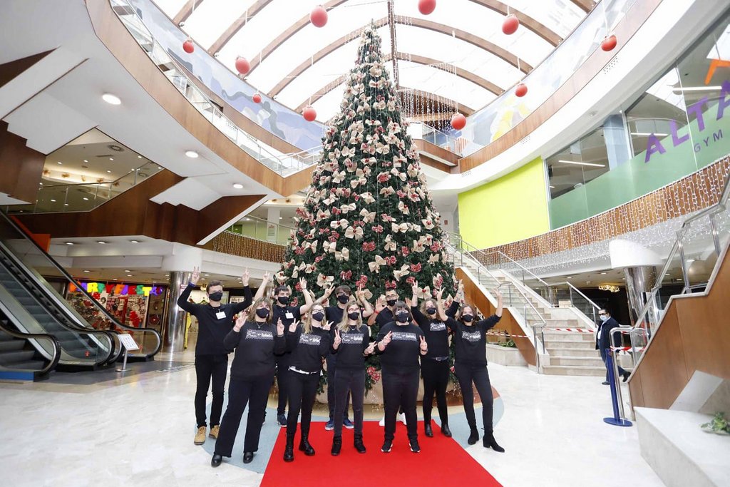 Las alumnas y alumnos del programa de formación dual de empleo dirigido a personas con discapacidad que está desarrollando el Centro Especial de Empleo Juan María de Nigrán con el apoyo de la Xunta inauguraron este jueves a árbol de Nadal del centro comercial Plaza Elíptica. Este año, todo el montaje y decoración del árbol la realizaron los alumnos/trabajadores de este proyecto, colocando casi 1.000 lazos.