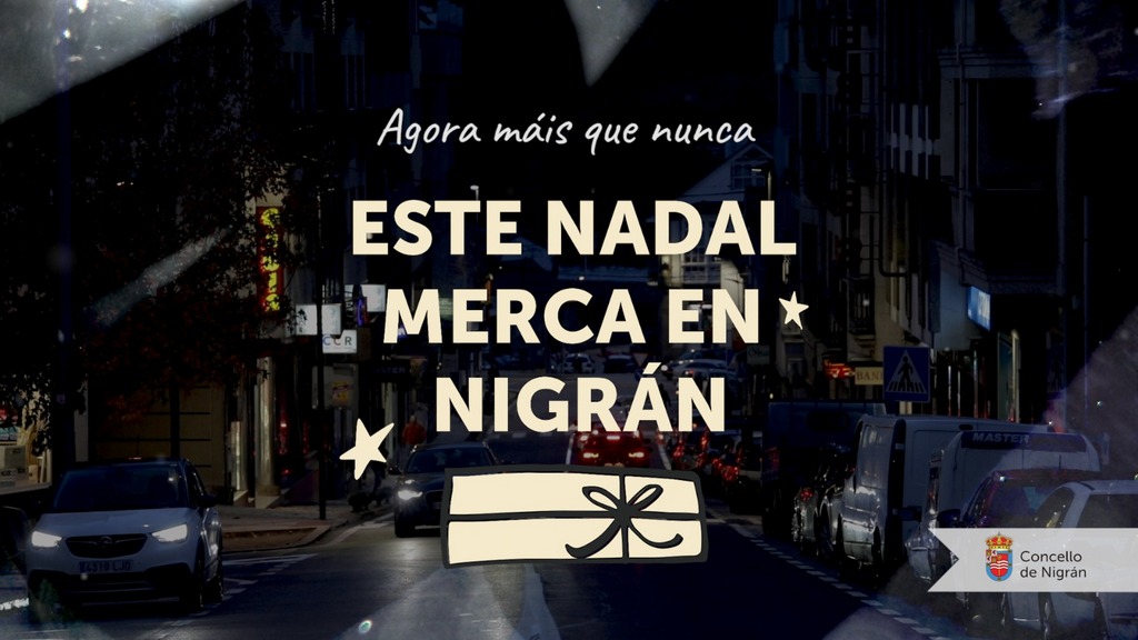 El Ayuntamiento de Nigrán avanzará desde esta noche el tráiler del vídeo promoviendo el consumo local en la Navidad y protagonizado por los propios comerciantes del municipio. Ellos mismos exponen mirando a la cámara su respectivo motivo para comprar dentro de Nigrán, siguiendo así con el mensaje de las anteriores campañas al respecto llevadas a cabo por el consistorio. La versión completa, de 3 minutos de duración, se estrenará el jueves 10 simultáneamente en las redes sociales del Ayuntamiento (20:30 horas, Facebook y Youtube) y se proyectará en todos los eventos de Nadal en los que técnicamente sea posible. El vídeo forma parte de la campaña municipal iniciada a finales de noviembre #VivoEnNigránComproEnNigrán y “Ahora más que nunca esta Navidad compra en Nigrán”.